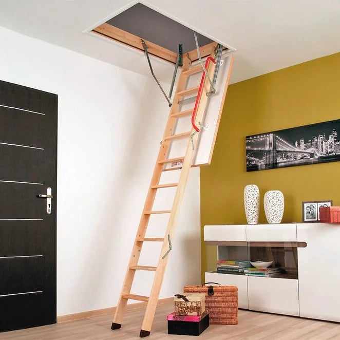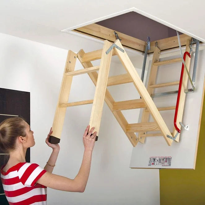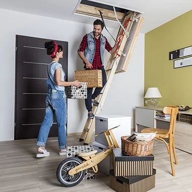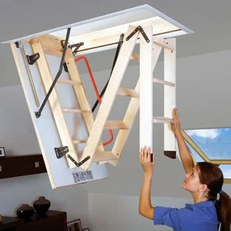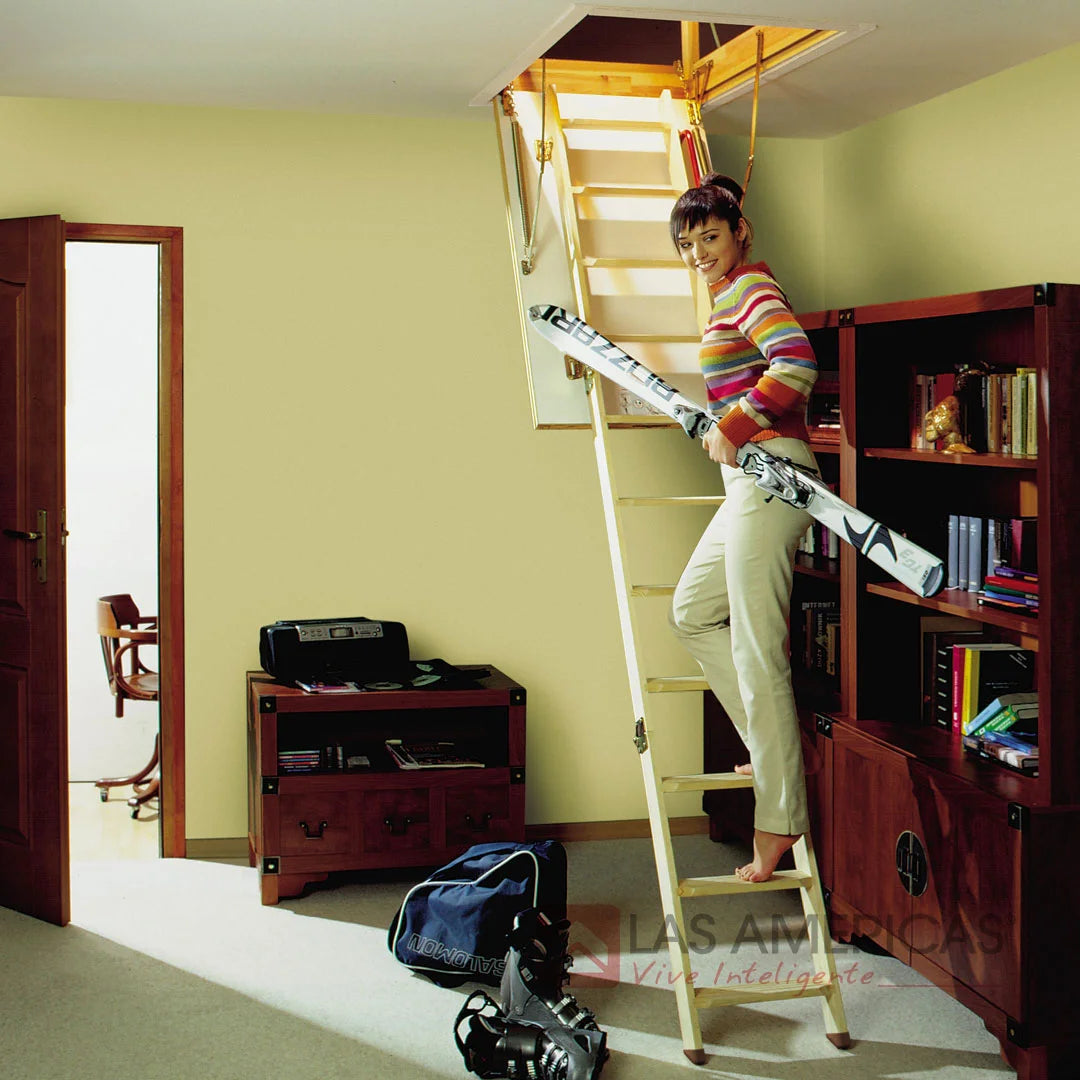 - Escalera 70 x 120 cm, apertura abatible, carga máxima en tránsito 160 kg. (Certificado).